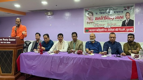 নিউইয়র্ক স্টেট বিএনপি আয়োজিত মতবিনিময় সভায় বিএনপি চেয়ারপারসন বেগম খালেদা জিয়ার উপদেষ্টা ড. জিয়াউদ্দিন হায়দার বলেছেন, গত ১৭ বছরের মতো সামনের দিনগুলোতেও আমাদের ঐক্যবদ্ধ থাকতে হবে। জুলাই-আগস্টের গণ অভ্যুত্থানের সাফল্য ঘরে ওঠাতে হলে আসন্ন নির্বাচনে ধানের শীষের প্রার্থীকে বিপুল ভোটে বিজয়ী করতে হবে।